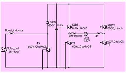 我們推薦使用功率模塊來設計光伏逆變器,因為把圖3拓撲結構上的所有器件集成到一個模塊里面可以提供以下優點: