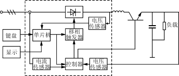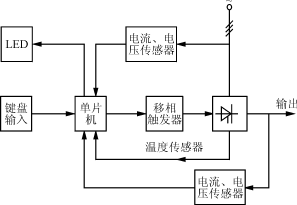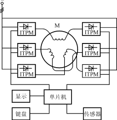 較為完整的ITPM一般由電力晶閘管,移相觸發器,軟件控制的單片機,電流、電壓、溫度傳感器以及操作鍵盤,LED或LCD顯示等部分組成。如圖1所示。