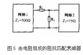 圖5所是由電阻器組成的阻抗匹配衰減器、它接在特性阻抗不同的兩個網(wǎng)絡(luò)中間,可以起到匹配阻抗的作用。