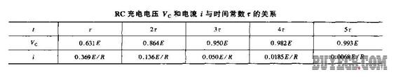 根據(jù)公式計算在不同時間內(nèi)的Vc和i,其結(jié)果見表1。從表中可以看出,r越大充電越慢。當t=3r時,Vc=0.95E;當t=5r時,Vc=0.993E;一般認為當 t=(3-5)r時,電容器上的電荷已被充滿。