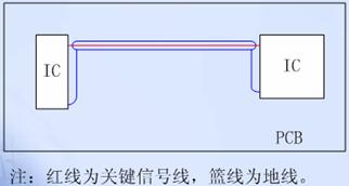 對于單層板和雙層板的設計,主要應注意關鍵信號線和電源線的設計。電源走線附近必須有地線與其緊鄰、平行走線,以減小電源電流回路面積。