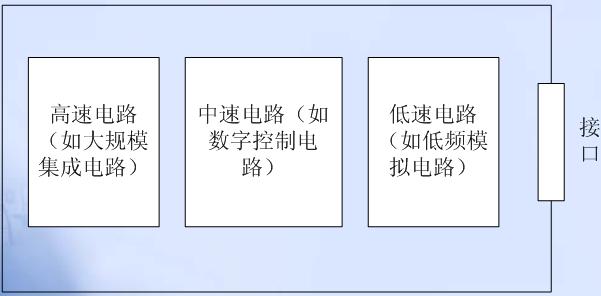2.多種模塊電路在同一PCB上放置時,數字電路與模擬電路、高速與低速電路應分開布局,以避免數字電路、模擬電路、高速電路以及低速電路之間的互相干擾。另外,當線路板上同時存在高、中、低速電路時,為了避免高頻電路噪聲通過接口向外輻射,應該遵從圖7中的布局原則。