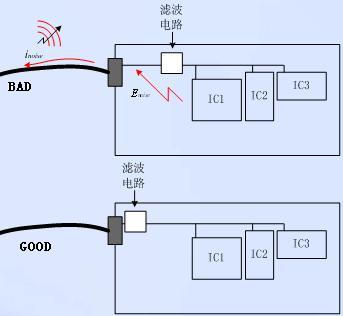 對于時鐘線、總線、射頻線等強輻射信號線和復位信號線、片選信號線、系統控制信號等敏感信號線,應遠離接口外出信號線。從而避免強輻射信號線上的干擾耦合到外出信號線上,向外輻射;也避免接口外出信號線帶進來的外來干擾耦合到敏感信號線上,導致系統誤操作。