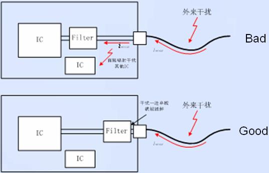 7.濾波器件需并排放置,以防止濾波后的電路被再次干擾。