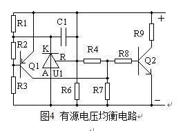 圖4電路的缺點是只能在限幅值以上動作,實現均壓動作,限幅值以下為靜態電流,均壓過程媒體現在整個充電過程,均壓效果受到影響。