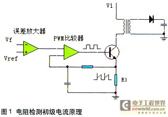 設計過載保護就需要檢測電路中的電流,DC-DC轉換器的電流取樣可以直接檢測輸出回路的電流,例如次級整流回路的電流;也可以檢測初級回路的電流,例如流過功率MOSFET管的電流。