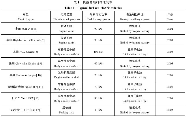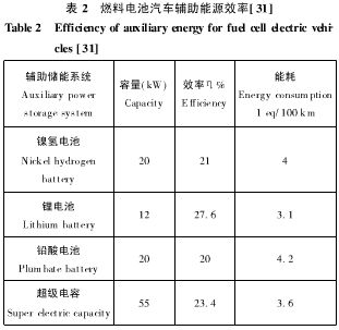 燃料電池不適合作為動力系統的單一驅動能源,必須選用輔助能源系統合理補充驅動電動汽車所需的能量,覆蓋功率波動,提高峰值功率,吸收回饋能量,改善燃料電池輸出功率的瞬態特性。目前各大汽車開發商采用了輔助動力,來提高燃料電池汽車的性能(表1所示)。