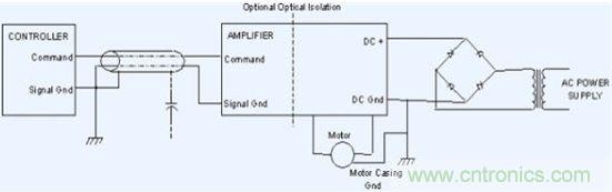 c. 為了保持命令參考電壓的恒定,要將驅動器的信號地接到控制器的信號地。它也會接到外部電源的地,這將影響到控制器和驅動器的工作(如:編碼器的 5V電源)。
