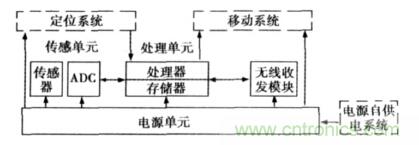 節點是無線傳感器網絡的基本功能單元,具體應用不同,節點的設計也不盡相同。傳感器節點的基本組成模塊有:傳感單元、處理單元、通信單元以及電源部分,節點的結構見圖2。此外,根據具體應用要求可以添加功能單元,如:定位系統、移動系統以及電源自供電系統等。
