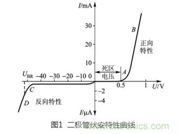 提到二極管,大家最熟悉的就是二極管的單向?qū)щ娦裕从撤睬€上如圖1所示。當(dāng)正向偏壓U=0.5V(硅管)時(shí),二極管開始導(dǎo)通,電流越大電壓越大,具有很低阻抗;當(dāng)加反向偏壓時(shí)二極管不導(dǎo)通,在一定范圍內(nèi)有很小的漏電流,具有很大阻抗。其這個(gè)單向?qū)щ娦裕财鸬搅碎_關(guān)的作用,所以在整流和開關(guān)方面都有廣泛的應(yīng)用。