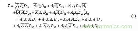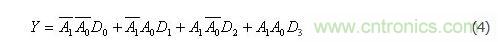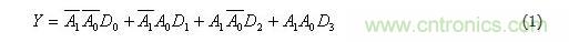 由表2可知,具有兩位地址輸入A0、A1的4選1數(shù)據(jù)選擇器,當使能控制端=0時,輸出與輸入之間的邏輯關(guān)系式為