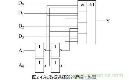 由邏輯表達式畫出4選1數(shù)據(jù)選擇器邏輯電路2所示。