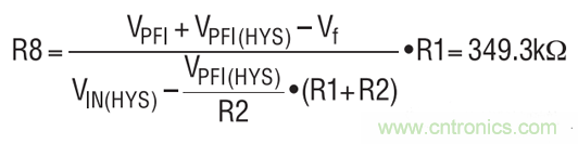 設(shè)計(jì)從設(shè)定 PFI 觸發(fā)電平開(kāi)始。R2 被設(shè)定為 121k, R1 的阻值應(yīng)把 PFI 引腳上的 PFI 觸發(fā)電平 (VPFI) 設(shè)定至1.2V,其計(jì)算公式如下: