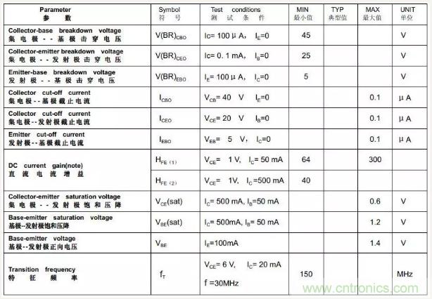 對于9013、9012而言,飽和時Vce小于0.6V,Vbe小于1.2V。下面是9013的特性表: