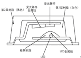 在一般的板上電源和通信設備市場上對光電耦合器件的要求如下:空間距離≥4.0mm,沿面距離≥4.0mm,絕緣距離≥0.4mm,必須滿足這些要求,否則無法應用。以上所述的要求,正是光電耦合器件實用化的結構制約因素。PS289xx系列封裝結構便是在上述的前提下,盡量削減組裝面積而設計的:它的空間距離和沿面距離相等,確保為4.0mm;引線寬為0.4±0.1mm,引線的中心間距為1.27mm,其內部結構如圖2所示。這種結構具備如下優點:①引線長度很短,接地面積的離散很??;②引線水平方向機械強度高。在內部結構里,充分考慮絕緣距離:① LED側和受光器件側的引線框之間距離最短;②LED側的金屬線和受光器件之間距離最短;③LED側的金屬線受光器件側的金屬線間距離最短。 電子技術書籍網