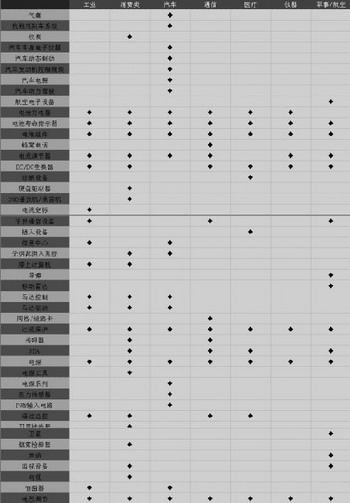 電流檢測電阻的應(yīng)用領(lǐng)域極廣。主要應(yīng)用與工業(yè)、消費(fèi)類、汽車、通信、醫(yī)療、儀器及軍用/航空和航天。這方面的應(yīng)用如表4所示。