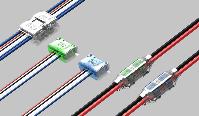這一新的絕緣位移連接器(IDC)系列能在各種LED照明應用上,快速實現永久的線與線,或線與扁平線纜端接。用戶無需接受任何培訓,只要借助連接器上獨立的左/右按鈕,客戶就能使用普通的手工工具,經過兩個簡單步驟,毫不費勁地完成端接: