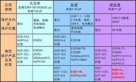 如表1所示,安森美半導(dǎo)體為便攜設(shè)備的大功率、高速和極高速等應(yīng)用領(lǐng)域均提供一系列的高性能硅ESD保護(hù)元件,滿足不同應(yīng)用需求。其中,安森美半導(dǎo)體的ESD11L、ESD11N、NUP4016(用于極高速應(yīng)用),ESD11B、NUP4xxxP5(用于高速應(yīng)用)更是當(dāng)今業(yè)界領(lǐng)先的產(chǎn)品。