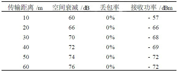 ①無障礙狀態下,隨著距離的增加,數據丟包率、接收功率和自由空間衰減的變化情況;