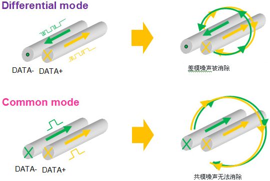 通過濾波器來消除差分傳輸信號線所產生的噪聲的同時,需要選擇具有高效靜噪性能,且不影響波形質量的濾波器。在差分傳輸信號線靜噪處理中,使用共模扼流線圈將更加有效。共模扼流線圈對于差分信號不產生任何阻抗,但對于共模信號是一個很大的阻抗,可對過大的共模干擾電流進行有效抑制。