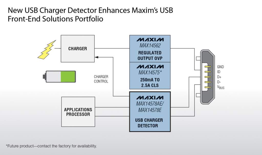 MAX14578E/MAX14578AE:Maxim推出USB電池充電檢測器