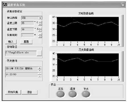 采用CC2531作為溫度數(shù)據(jù)的匯聚節(jié)點(diǎn),采用IEEE 802.15.4協(xié)議組成一個(gè)由10個(gè)采集終端組成的星狀網(wǎng)絡(luò),對(duì)終端節(jié)點(diǎn)的溫度進(jìn)行采集。終端節(jié)點(diǎn)硬件由CC2530實(shí)現(xiàn),溫度傳感器采用DS18B20.上位機(jī)由Visual C++編寫(xiě),實(shí)現(xiàn)數(shù)據(jù)的實(shí)時(shí)顯示,并實(shí)現(xiàn)數(shù)據(jù)的存儲(chǔ)和歷史溫度查詢(xún)。CC2531的USB設(shè)備描述符里聲明PID=0x1000,VID=0x0451,UBS驅(qū)動(dòng)采用Windows XP系統(tǒng)提供的usbser.sys.溫度采集結(jié)果如圖5所示。
