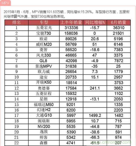 根據中國汽車工業協會的數據,2015年上半年380余款車型的銷量按照級別分類如下: