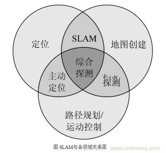 正如圖中所示,機器人自主定位導航技術中包括定位、地圖創建與路徑規劃(運動控制),而SLAM本身只是完成機器人的定位和地圖創建,二者有所區別。