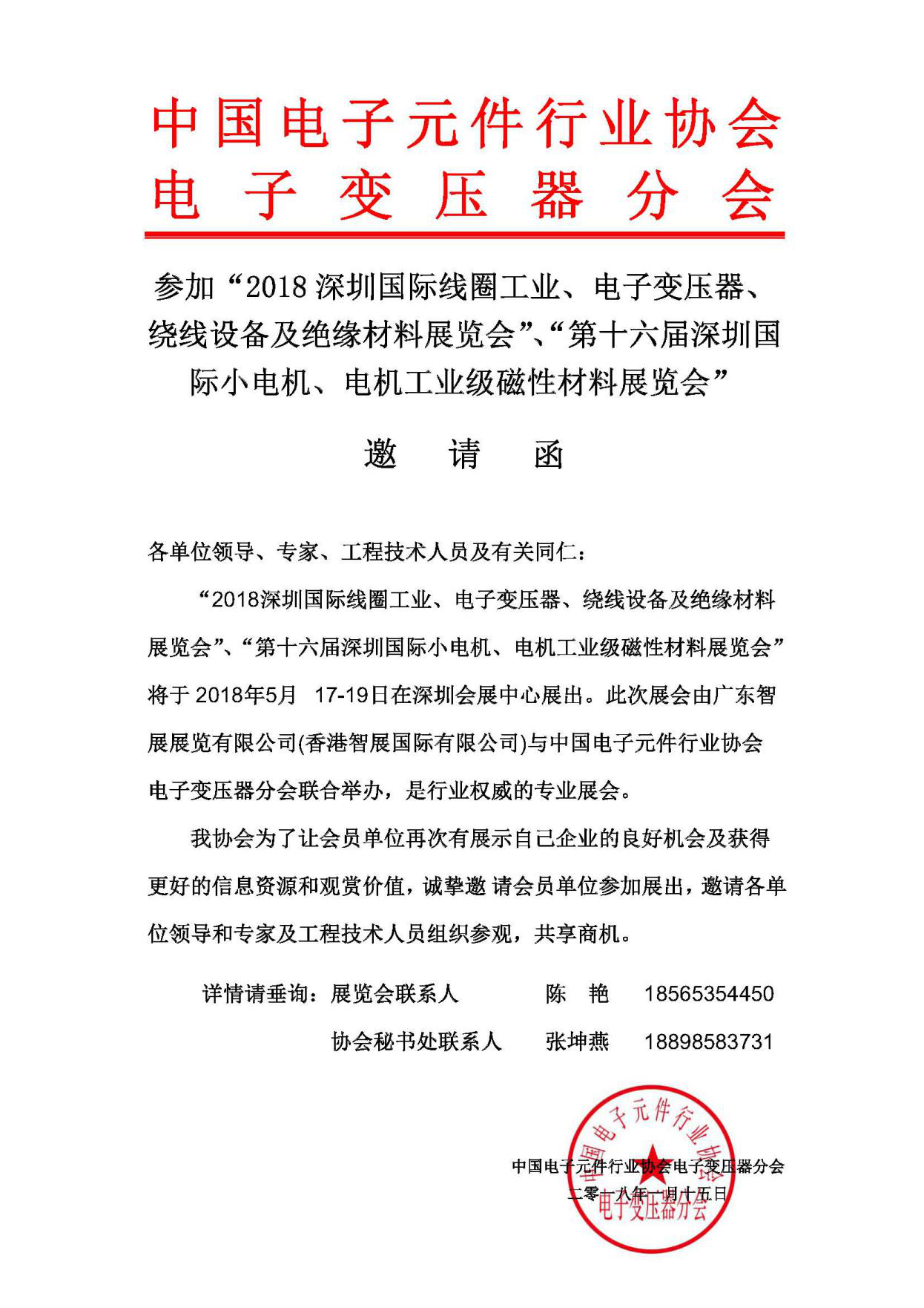 為進一步整合行業資源,提升展會質量,更好地為行業服務,中電元協電子變壓器分會將作為本屆展會的主辦單位全面參與2018深圳國際線圈工業、繞線設備及電子變壓器展覽會。雙方將在資源整合、數據共享、展會招商、宣傳推廣、同期會議等領域開展深度合作,預將深圳國際電子變壓器展打造成全國最大最專業的行業展會。