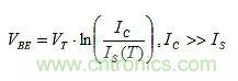 VT和IS都對TC(VBE)產生影響。IS對VBE的影響大于VT,且極性相反,導致對VBE的總影響約為–2mV/℃。因此,取消IS影響比VT的更重要。