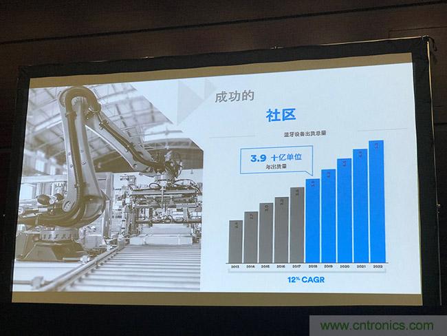 在汽車領(lǐng)域,藍(lán)牙將成為大部分新車的標(biāo)配。2018年,所有新車中高達(dá)86%的新車將具備藍(lán)牙連接功能,藍(lán)牙無線傳感器系統(tǒng)能夠?qū)蓽y的信息和警報(bào)傳輸?shù)椒?wù)管理解決方案,從而簡化商業(yè)車隊(duì)及消費(fèi)車輛的維護(hù)。預(yù)計(jì)到2022年,車用設(shè)備出貨量將增長4.5倍,與智能手機(jī)融為一體的職能車鑰匙將通過藍(lán)牙連接實(shí)現(xiàn)自動(dòng)鎖定和解鎖檢測,自定義座椅設(shè)定,分享虛擬鑰匙的便利功能。