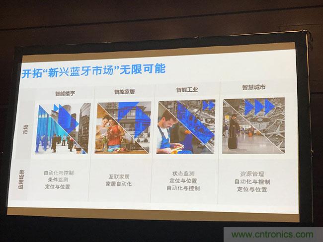 藍(lán)牙技術(shù)聯(lián)盟(Bluetooth SIG)目前已經(jīng)擁有34000會(huì)員,其中6000家中國會(huì)員企業(yè),SIG總監(jiān)Chuck Sabin回顧了藍(lán)牙20年來的發(fā)展歷程和取得的成績,以及藍(lán)牙市場的發(fā)展趨勢特別是新興市場的發(fā)展前景。智能樓宇,智能家居,智慧城市和汽車是熱門應(yīng)用領(lǐng)域,Sabin指出。