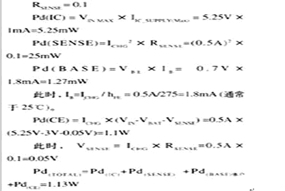預充電、快速充電一恒流以及快速充電-恒壓階段開始時,可采用類似計算方法。當選用PNP晶體管時,必須采用上述最高功率損耗方案,以滿足功率與溫度處理的要求。電源電壓與電池電壓的差值越大,充電器的效率就越低。