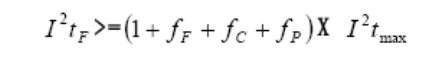 在這里,我們重點分析第(1)點。實際選用的熔斷器的I^{2}t_{F}值,即相應于電流浪涌I2tmax最大值處的熔斷器的I2t值, 應該滿足: