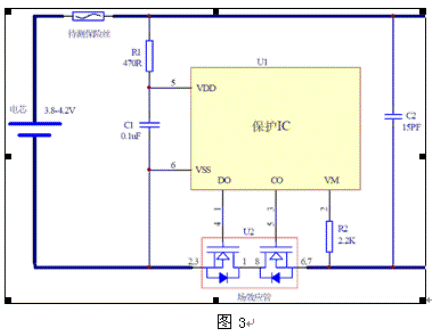 從實例1,2可以看出,單節鋰電池上選擇保險絲需要考慮到保護IC的短路保護時間。