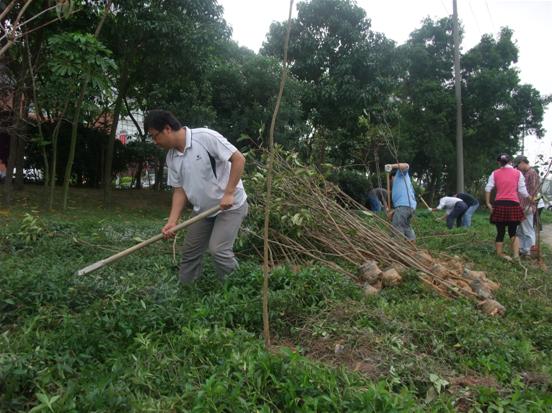 參加此次植樹活動的除了檳城電子的全體員工外,還邀請了檳城的代理商和供應商參加。總共200多人,共分成了4個植樹小分隊。在蔡總的帶領下,我們拿著植樹的工具,拉著小樹苗,迎著春天的暖風,到了自己的領地。大家的勢頭都很足,精神抖擻,各個都掄起鐵鍬鋤頭,為小樹苗挖樹坑。