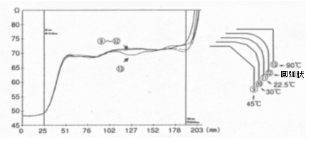 依此就可推論「線路圖案直線部分」與「造成輻射最大值的波長(zhǎng)」兩者的關(guān)連性,也就是說線路圖案直線部分長(zhǎng)度較短的A、B、C三線路圖案的輻射較低,相形之下D、E、F的輻射比較大;凹凸集中的D、E、F的輻射比凹凸分散的A、B、C大,G則無法納入檢討范圍。