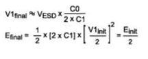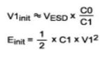 4. 能夠在瞬間導(dǎo)致IC損壞的能量相當(dāng)于微焦級(jí),有外部電源去耦電容時(shí),考慮這一點(diǎn)非常重要,從電源電容(C1)傳遞到IC的能量是: