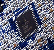 好的主板,電源的合理分配是必不可少的。電源管理芯片一般在CPU插槽附近,可以直接能夠觀察到,主流廠商為Intersil和Maxim。如下圖所示: