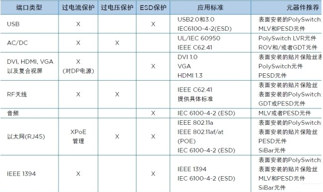 對LCD電視的界面的故障保護有明確地要求,包括有涉及各種故障保護需求的具體的標準。圖片7總結了這些標準以及對每一種端口類型所建議的電路保護設備。