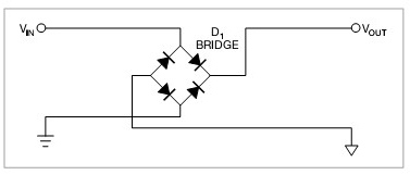 圖2,用一個橋式整流器,不管輸入是什么極性系統都可以正常工作。此電路二極管功耗是圖1中電路的兩倍。