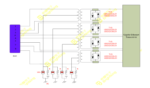 TVS ARRAY RJ45 以態網接口上的應用如下: