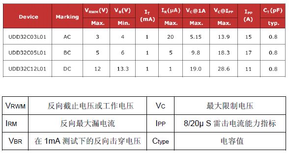 • 在較高數據傳輸頻率上,盡量采用低電容系列的產品UDD32C03/05L01 等其它