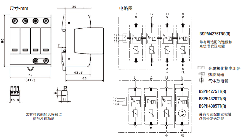 這種雙極設備的特點是,在TN系統中作為一種結合了避雷器和浪涌保護器的模塊使用(“2-0”電路)。