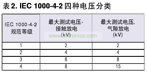 第二種方法是IEC 1000-4-2 >現(xiàn)已成為國際標(biāo)準(zhǔn)。相比Method 3015.7測試條件,它規(guī)定了更高的電容和更低的電阻}IE C 1000-4-2被廣泛地)II于測試終端設(shè)備的接口(表2)。值得一提的是> Maxim公司的模擬開關(guān)和RS-232/RS-485接口IC完個符合這些ESD標(biāo)準(zhǔn),且無須外圍兒件。