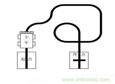 所謂小車循跡,就是在白紙上畫出黑色的線條,稱為賽道;小車沿著賽道按要求(可以做一些指定的任務)行進時,能自動識別賽道并按賽道線條行走,稱為小車循跡。如圖1所示,該賽道是2010年全國職業(yè)院校大學生職業(yè)技能競賽月球車競賽項目湖南賽區(qū)賽道圖。