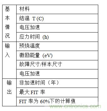 這個(gè)標(biāo)準(zhǔn)還指定了3個(gè)批次的產(chǎn)品,每個(gè)批次有77個(gè)部件,不應(yīng)在應(yīng)力下出現(xiàn)故障。231個(gè)部件中的零故障標(biāo)準(zhǔn)意味著批內(nèi)缺陷允許百分比 (LTPD) 的值為1。這表示,你有9成的把握地宣稱,在推測(cè)的應(yīng)力條件下,一個(gè)批次內(nèi)有1%的部件是有缺陷的。換句話說,在Tj = 55°C的溫度條件下運(yùn)行9年,在最大工作電壓上被偏置。最初地最大故障率 (FIT) 大約為50。Tj = 55°C下的FIT也是使用0.7eV的激活能量,從231個(gè)部件的零故障結(jié)果中得出。