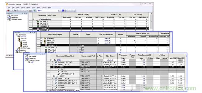 當(dāng)今的關(guān)鍵高速設(shè)計(jì)異常復(fù)雜,如果沒有有效的手段來(lái)管理約束規(guī)則,則對(duì)走線、拓?fù)浜托盘?hào)延遲等方面的設(shè)計(jì)、約束和管理將會(huì)變得異常困難。為了在第一次迭代中就構(gòu)建出成功的產(chǎn)品,必須在設(shè)計(jì)流程的早期設(shè)置約束規(guī)則,以便設(shè)計(jì)達(dá)到要求的目標(biāo)。良好的約束規(guī)則管理可防止您使用價(jià)格高昂或無(wú)法采購(gòu)到的元件,并且最終確保電路板符合性能和制造要求。
