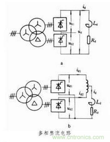 采用多相整流電路能改善功率因數,提高脈動頻率,使變壓器初級電流的波形更接近正弦波,從而顯著減少諧波的影響。理論上,隨著相數的增加,可進一步削弱諧波的影響。但這樣做增加了設備費用,在技術上對精確地得到相同的控制角提出了較嚴格的要求。因而需對方案的技術經濟指標進行全面分析,最后作出選擇。