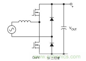 一種替代方案是連續導通模式圖騰柱拓撲。這種拓撲結構充分利用了GaN的所有關鍵特性,最終導致尺寸更小、工作頻率更高的設計(圖4)。GaN的零反向恢復對于實現該拓撲特別重要。